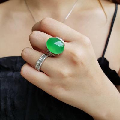 阳绿,又可称为正阳绿、辣绿,即绿色鲜艳、纯正、饱和、不含任何偏色,分布均匀,质地细腻,是翡翠中的极品。翡翠的绿色产生的原因主要是其内含有万分之几的三氧化二铬所致,若还含有铁、锰、钒、铁等其他微量元素,会影响绿色的纯正度,所以成分稍有偏差,就可能不属于阳绿的范畴。凡是价值高贵、达到宝石级的阳绿翡翠,均要求其颜色为正色或带有正色,并具有浓郁、纯正、明亮、均匀的特点,即所说的“浓、正、阳、匀”。