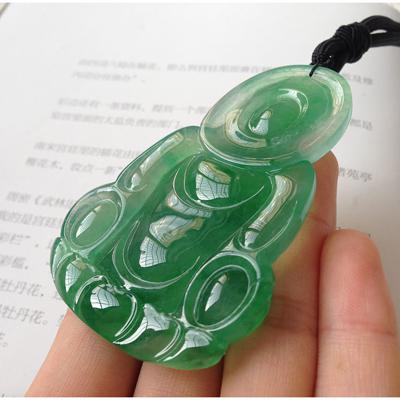 (5) 色的均匀度:简称“匀”,在翡翠绿色评价中俗称吁旷。这一指标要求绿得均匀柔和,如果绿得不均匀、不柔和。绿色呈团块状,星散状,则称为“花”。在阳绿翡翠玉件中,均匀的绿色与好的底子、好的透明度等条件组合在一起,会显得非常高贵,令人赏心悦目。另外,色比高的翡翠,其色的均匀度不可能一定就好,如一块全绿的饰品,色比为1,但在这件饰品上有的地方色浓,有的地方色淡,如此,色的均匀度还是不够理想。