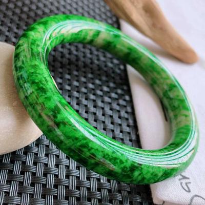 微透明,结晶颗粒较豆种小,颜色为略偏暗的绿色,而且绿色多成一团一块的分布,因此称为花青。花青多用于加工手镯、花件,均属于中低档类别。