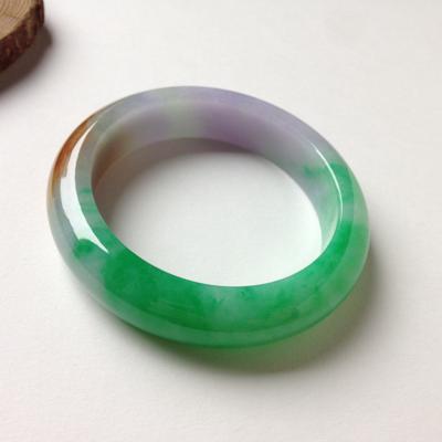因为翡翠原石生长环境的复杂,一般情况下,要得到一块体积较大的、质量上乘的纯色翡翠很难,所以市面上见到的翡翠手镯的颜色大都是两种以上的颜色杂在一起的,但这并不影响它的美观。福禄寿翡翠手镯指的是手镯中具有最为合衬的红、绿、紫三种颜色(三彩翡翠)。这是比较难得的三种颜色,尤其是这三种颜色分布得当,更是上等佳品。当然,还要看这三种颜色的深浅和鲜艳度。如果红、绿、紫三色分布适当,色彩又很鲜艳,再加上种好、质好,这样的翡翠手镯可以说是无价之宝,目前在收藏界很难寻觅得到。