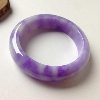 紫色在翡翠中被人们称为紫罗兰色。是各种深浅的粉紫和蓝紫,紫色的翡翠手镯,总的说来其色调比较浅淡,颜色分布不均匀、种比较干、质比较粗。只要种稍微好一点的价格就会上万元。
