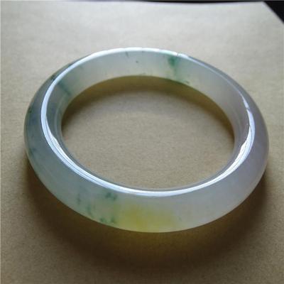 手镯底色呈现白绿二色,一半底白,一半底晴水,两色相互交接,相互融合,就如同冬春二季,您刚渡过了白雪皑皑的冬天,走着走着,就闻到了春天绿色的气息。镯身四分之一处有飘洒着一抹水亮的黄色,那里弥漫着秋天的气息,黄色如同大大小小的落叶,一阵微风吹过,一片片的落叶在空中翩翩起舞,缓慢地飘洒在冬天的白雪上。