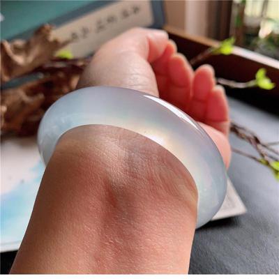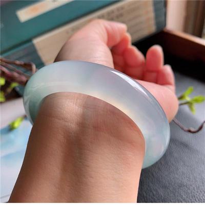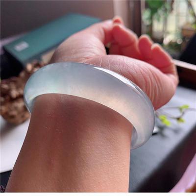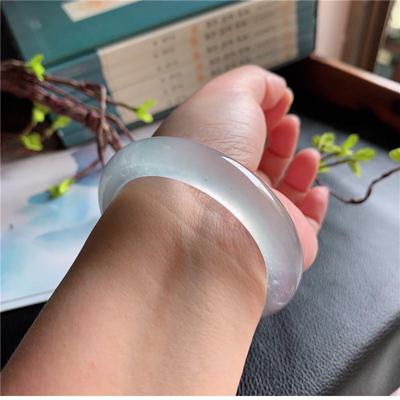 有人说冰种飘兰花的镯子就像是一副水墨画,我倒觉得这镯子更像是一滴兰色的墨水不小心滴入了清水中,随着清水的波动,飘散开来,一发不可收拾。
