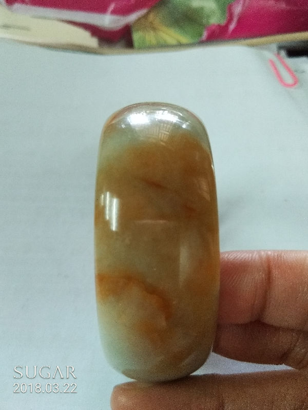 这只硬度的确高,带了10几年,敲过超多次也没事,里面可看出结晶结构,就是不知是玉还是???至於染色部份十几年不会退吗???这只没退色过