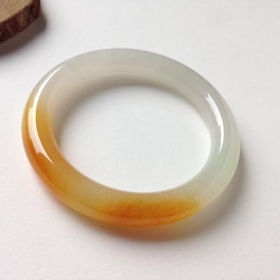 多数黄翡结构较粗,混浊不纯,常带褐色,不够阳也不够透。通常将黄色翡翠加热形成深红或鲜红色调的红翡。天然优质的黄翡又称 “金翡翠”,呈橘黄色或蜜糖色,晶莹透亮,色鲜又匀,属黄翡之上品,较为罕见。黄翡翠手镯在翡翠饰品中的大家庭中是中高档翡翠饰品中的一支生力军,但若消费者在市场中见到既颜色鲜艳,又有相当透明度的黄翡翠手镯,就需要认真鉴别是否为人工处理品,因为纯天然的黄翡即使在珠宝行业内部也是价值不菲的。