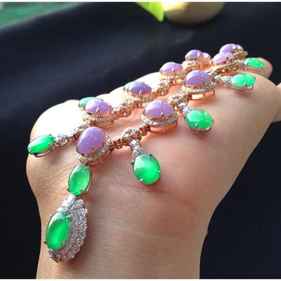 (1) 皇家紫:是指一种浓艳纯正的紫色,它的颜色色调非常纯正,饱和度一般较高,亮度中等,因而显出一种富贵逼人、雍容大度的美感。这种紫色实际上非常少见,属理论级翡翠,即使在紫色翡翠中也是百里难寻其一,具有很高的收藏价值。