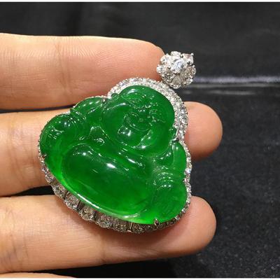 在市场中带绿色的翡翠数量不少,但满绿翡翠却是很难得,因此在市场上,满绿翡翠的价格都比较高,特别是种水好的满绿翡翠价格都非常高,如1997年,一串玻璃种满绿圆珠项链在香港拍卖会以拍到7500万港币的高价。正因为满绿翡翠的价格都很高,所以人们都以为满绿翡翠都是品质很高的翡翠,其实不然,满绿翡翠只是指整体都是绿色的翡翠而已,其实满绿翡翠有品质高的玻璃种满绿翡翠,也有种水差些的豆种满绿翡翠。