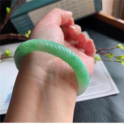 内圈圆,外圈圆,条杆从弓形到半圆不等,因为内圈磨平,所以又称为平安镯。现在世面上九成以上镯子的式样,底部为平,弧度大,所以荧光会集中映射在整个镯身,而且因为宽而薄,种头水头展示得更加完美。 这种镯子出现的晚,算是现代的发明,好处是省工省料,内圈贴腕。这种镯子百搭,任何玉种玉色都有。