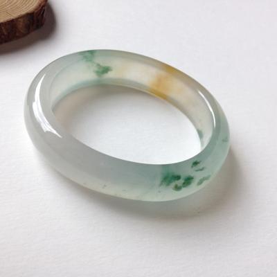 是以钠长石玉为主要成分的一种玉镯,也有人称为“钠长石玉手镯”,手感较轻,佩戴起来有轻巧舒适的感觉。市面上销售的水沫子手镯一般种水较好,颜色十分丰富,常为白色、灰白、灰蓝、蓝绿色,少见紫色、粉红色、红色、绿色等颜色的组合,有时可见色带;呈透明或半透明状,粒状结构,部分手镯具有少量分布不均匀的白斑、白色絮状物等,水沫子手镯是年轻女性很值得购买的饰品。