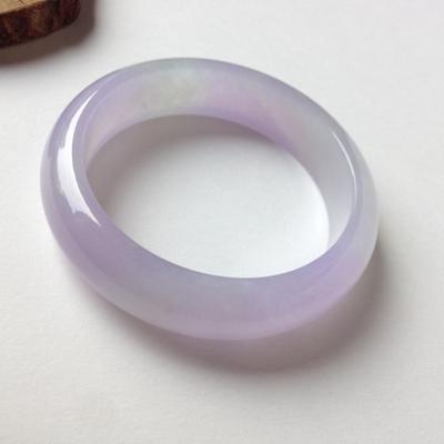 4)看加工精度。好的翡翠手镯粗细均匀,抛光精良,具滑感,用手触摸,没有不平的感觉,平放在玻璃上,平稳,触动无响声。一般价位高的镯子,做工都是比较精细的,主要是一些价格几百块~几千块的低档手镯,有的会出现打磨不好的情况。