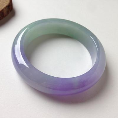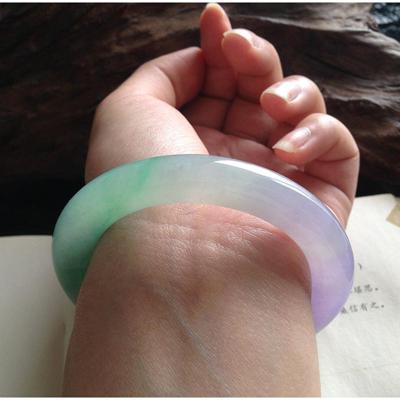 翡翠手镯带紫色看上去紫若烟霞、贵气袭人,宛若一位美人珊珊而来。带紫色的翡翠手镯很稀有,如果我们在黄光下观察,翡翠手镯的颜色会比较深,一般来说,翡翠手镯带紫色的话看上去质地更加细腻,透明度更高,因此带紫色的翡翠手镯很难发现,也特别受到人们的喜爱。